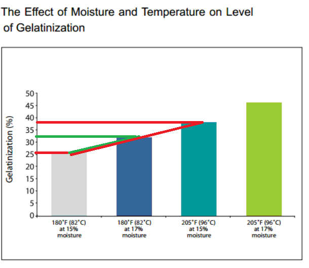 The effect of moisture and temperature on level of gelatinization